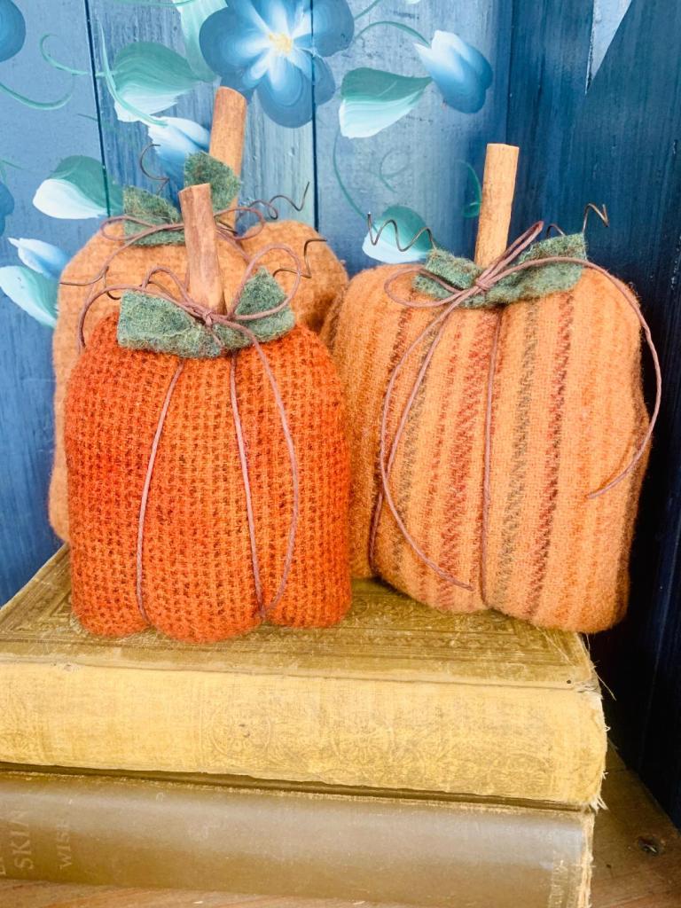 Summer and into early fall, I like to make these adorable sets of Primitive Pumpkins. Next to Basketmaking, working with wool is a close second. I use beautiful hand felted wool from a couple different Etsy Stores. You will find the first sets of these wool pumpkins for 2024 that are ready to ship in my Etsy Shop. Link below: